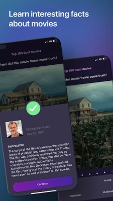 This app is for real moviegoers! Quiz can be played alone or with friends. All quiz questions contain a short description with interesting facts about the movie. After our game, you will definitely want to watch something new)