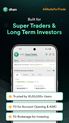Dhan is a user-first stock market trading app designed to deliver an exceptional online trading and investing experience. Whether you want to invest in stocks, explore intraday trading, option trading, or start your share market investment journey with ETFs and mutual funds, Dhan is your all-in-one trading platform for the Indian stock market.