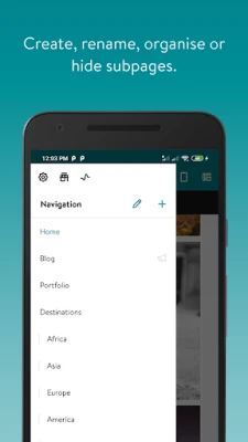 Edit your site’s navigation and create new pages. You can also hide, rename, rearrange, and delete pages within the app.