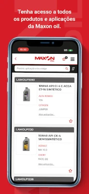 Nesse aplicativo você poderá encontrar o óleo ideal para seu veículo e também contar com todas as informações dos produtos Maxon oil disponíveis no mercado.