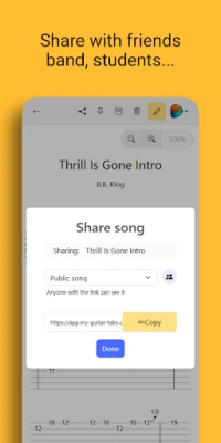 "My Guitar Tabs" is a guitar tab maker designed as a digital notebook, allowing you to easily create, store, and share your original compositions.