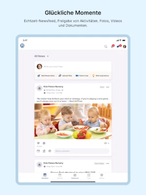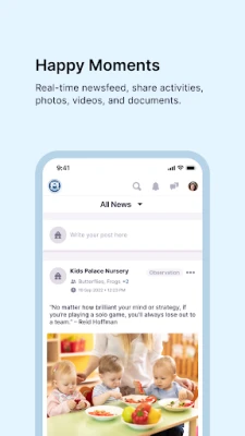 Bid farewell to the fear of missing out on your child's precious moments! Our app ensures you're constantly in the loop with instant updates, delightful photos, and heartwarming videos of your little one's activities and adventures throughout the day.