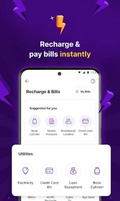 PhonePe is a payments app that allows you to use BHIM UPI, your credit card & debit card or wallet to recharge your mobile phone, pay all your utility bills and to make instant payments at your favourite offline & online stores. You can also invest in mutual funds & buy insurance plans on PhonePe. Get Car & Bike Insurance on our app.