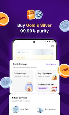 - Buy or Sell 24K Pure Gold: Assured 24K purity, build gold savings on our app