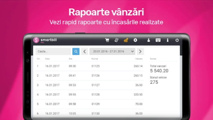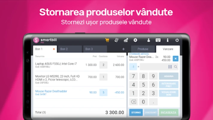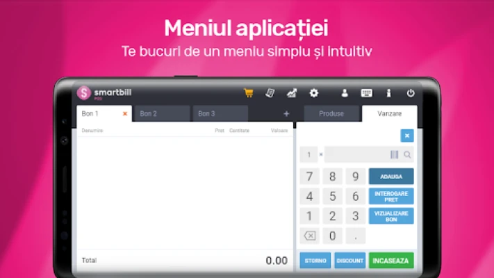 2. SmartBill POS + SmartBill Facturare/Gestiune: folosesti aplicatia SmartBill POS conectata in timp real la contul tau SmartBill Facturare/Gestiune si te bucuri in plus de functionalitatile programului de facturare/gestiune