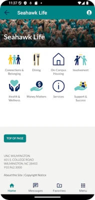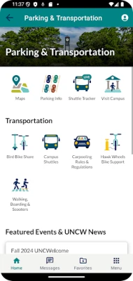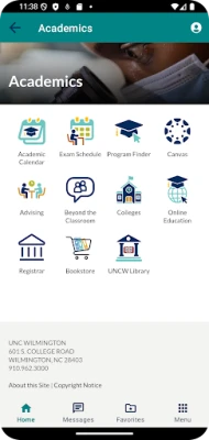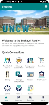 The University of North Carolina Wilmington's official app, UNCW Mobile, provides easy access to essential information for our campus community. The app allows you to quickly connect to university resources from your mobile device. Examples include: