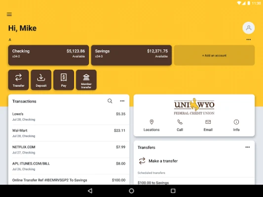 Contact Us: Locate ATMs or branches and contact UniWyo customer service right from the app.